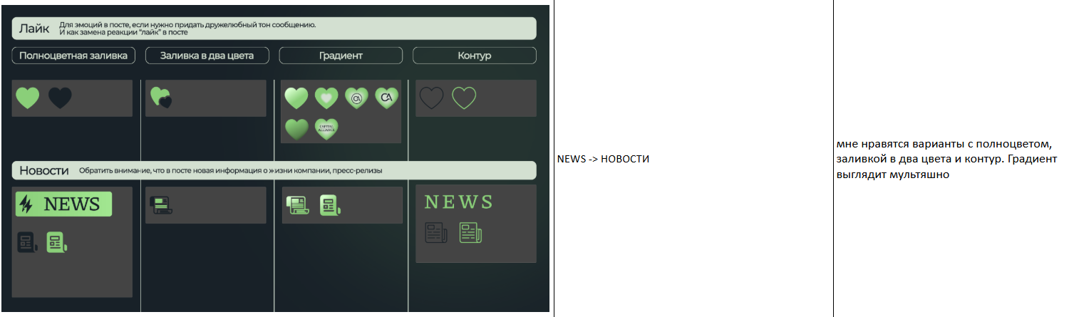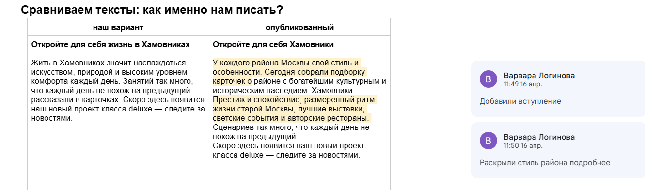 Например, для Capital Alliance мы делали разбор всех правок от клиента, чтобы разобраться в желаемом ToV.