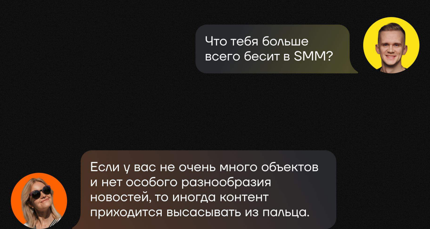 - Задавать много вопросов — тогда мы получим много фактуры для постов, узнаем вкусы заказчика, станем глубоко понимать продукт и поймем, как именно о нем рассказывать.