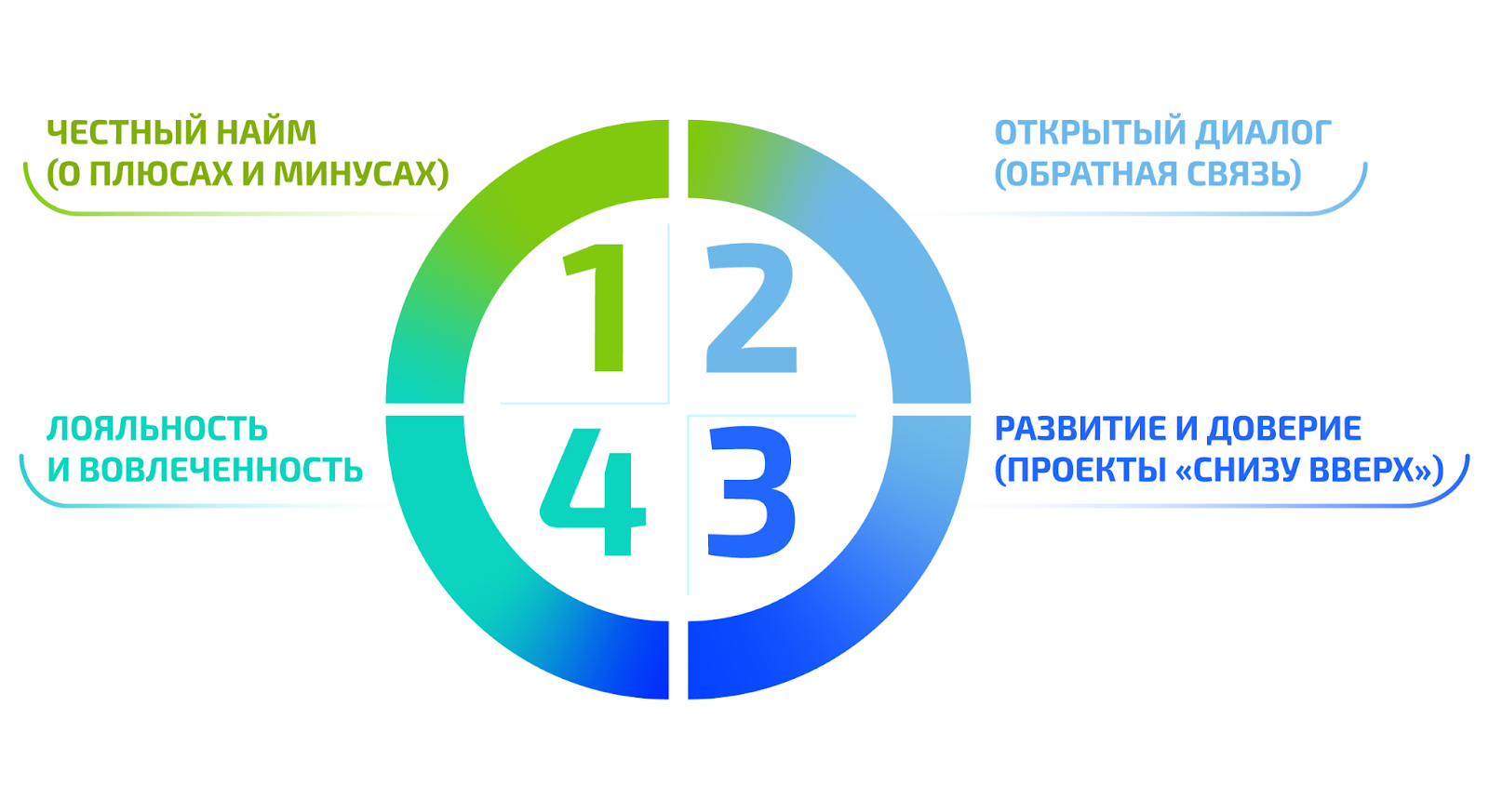 Обратная связь как диалог: используйте системы обратной связи не как формальность, а как инструмент для повышения эффективности сотрудников и создания открытого диалога в компании. Анонимные опросы, результаты которых кладут в долгий ящик, вызывают отчаяние и снижают мотивацию, а открытые обсуждения и круглые столы, которые дают сотрудникам возможность влиять на процессы, вызывают вдохновение, формируют лояльность и преданность.