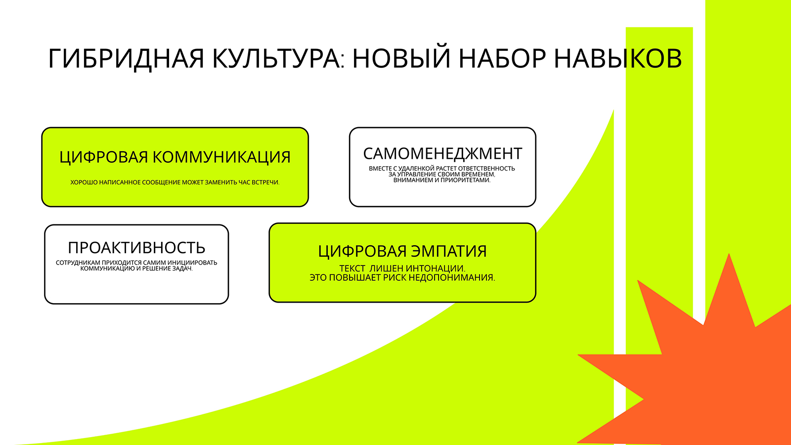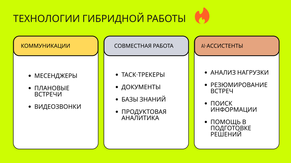 В этом случае гибридная модель перестает быть компромиссом между офисом и удаленной работой и превращается в инструмент повышения эффективности.
