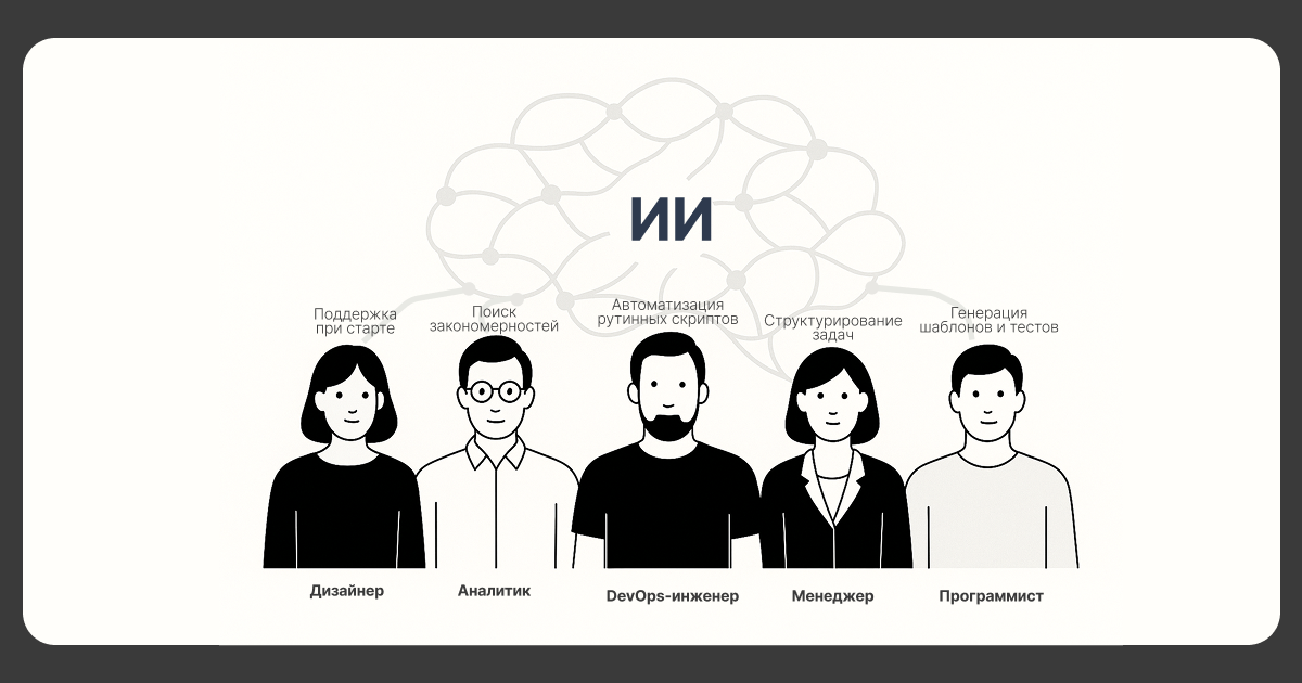 ИИ помогает писать повторяющиеся участки кода, предлагает варианты при проверке, помогает выявлять уязвимости, а иногда — предлагает архитектурные улучшения.