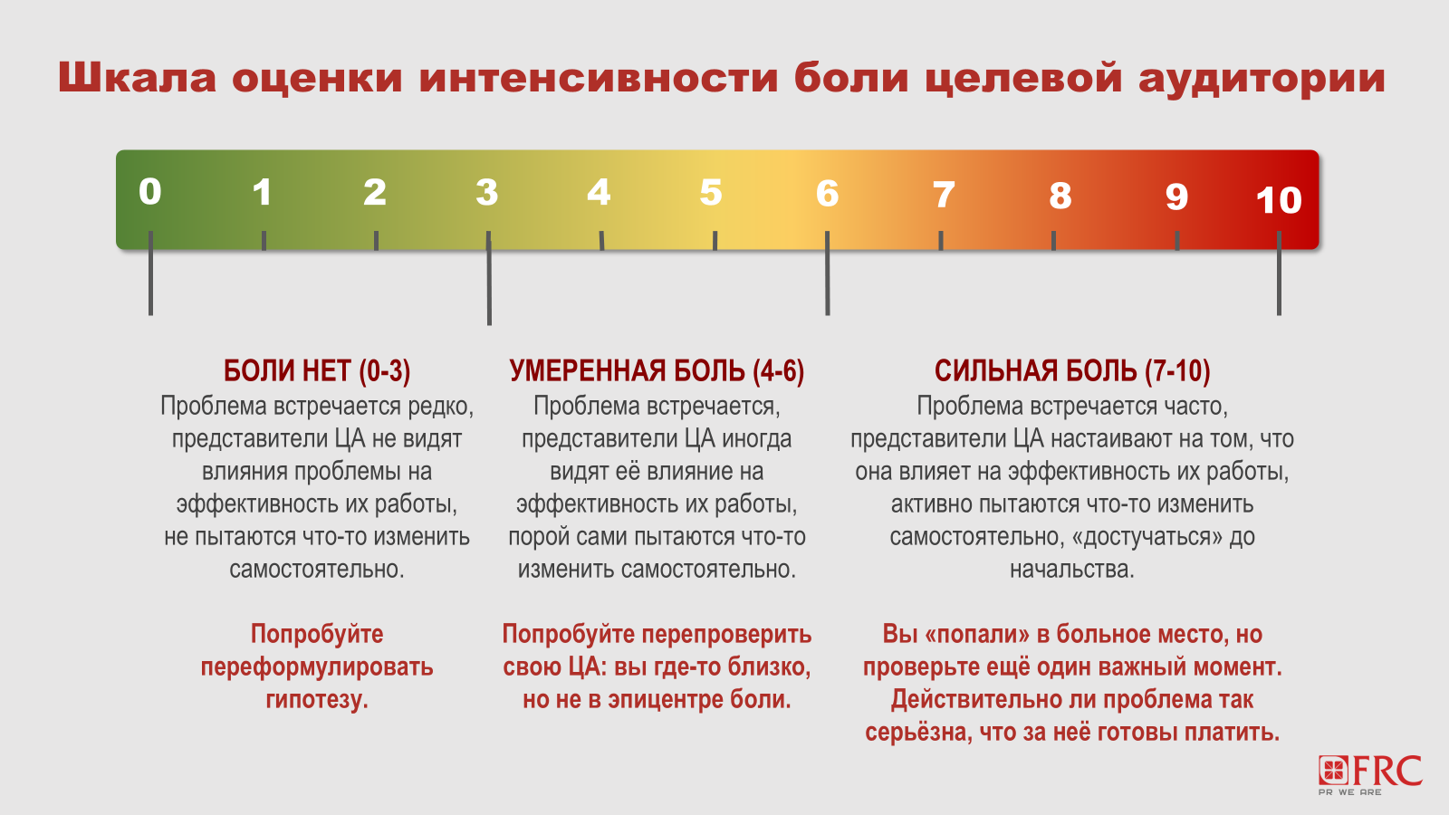 Вам важно не просто «понять, есть ли интерес», а сформулировать измеримые вопросы: «Как часто врачи сталкиваются с этой проблемой?», «Как сильно она влияет на их работу или доход?», «Какие решения они уже пробовали?», «Кто принимает решение о внедрении инноваций, кто на этот процесс влияет, а кто внедренным решением пользуется?».
