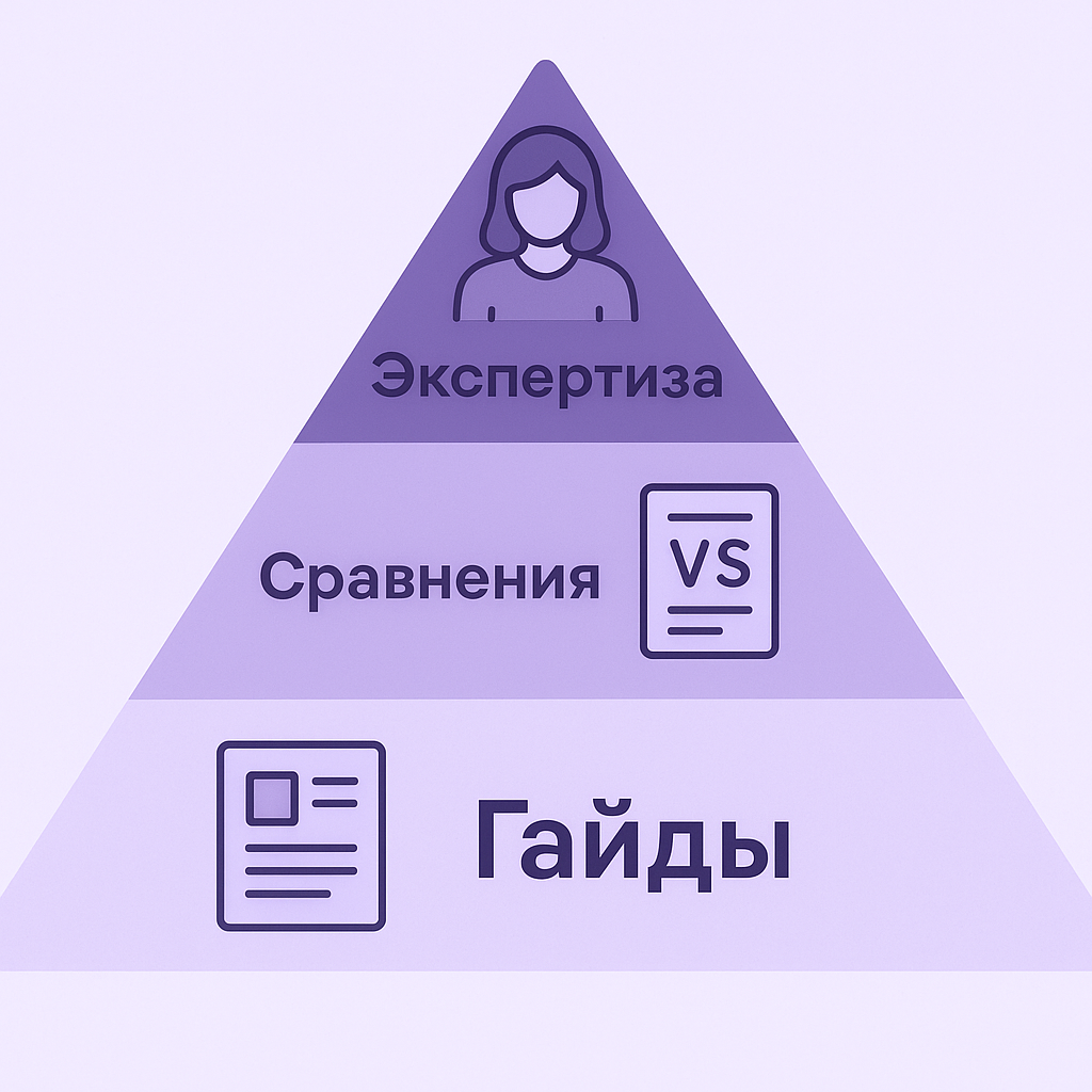 - Используйте три кита: гайды, сравнения, экспертизу.