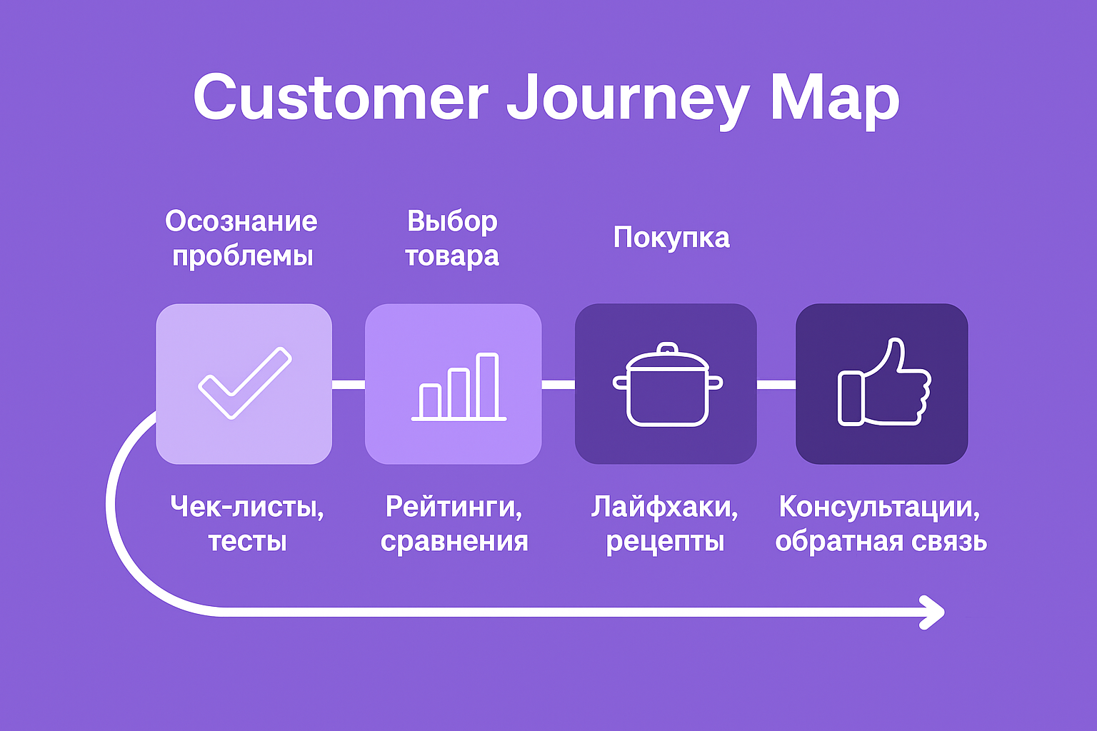 Контент теперь должен быть встроен в Customer Journey Map — карту пути клиента от момента осознания проблемы до этапа лояльности.