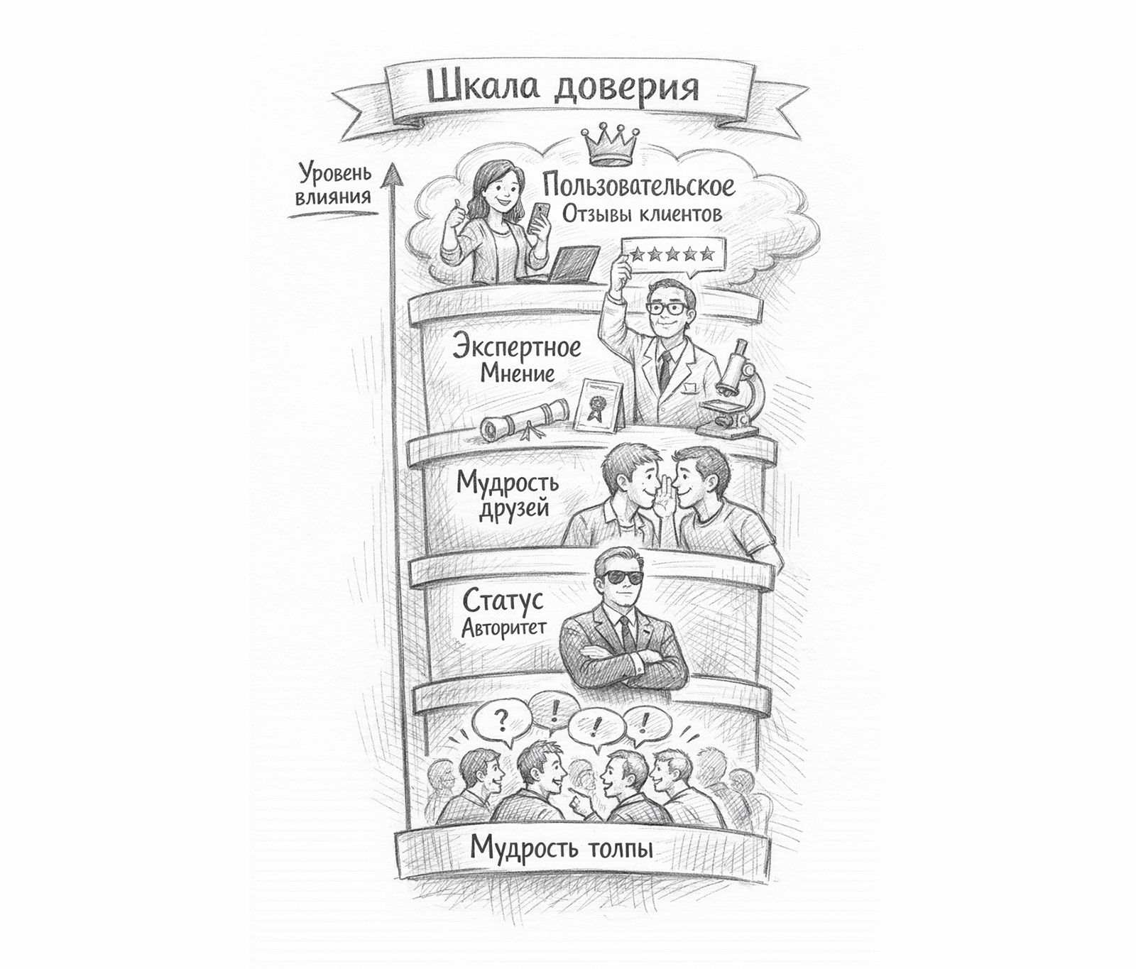 Третья — не то доказательство не той аудитории. В B2B лучше работает кейс из своей сферы, чем абстрактная рекомендация со стороны. В B2C может сработать релевантный блогер — если аудитория ему правда верит, а не потому, что он сегодня советует крем, а завтра уже учит инвестировать.